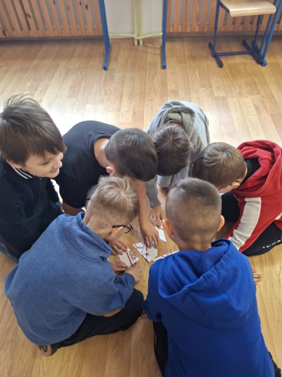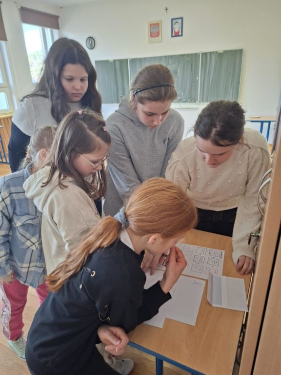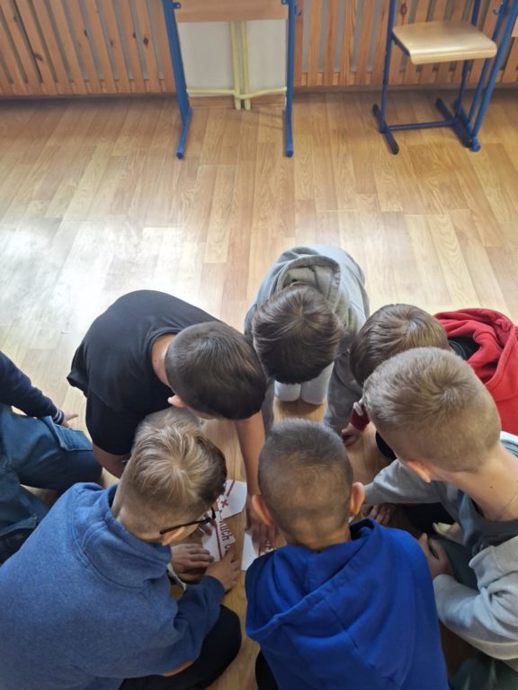 Gra wywołała mnóstwo emocji, uczniowie dzielili się swoimi pomysłami, działali wspólnie, ćwiczyli logicznie myślenie i analizowali wskazówki w celu rozwiązania zagadek. Każda grupa chciała wykonać zadanie w jak najkrótszym czasie!
