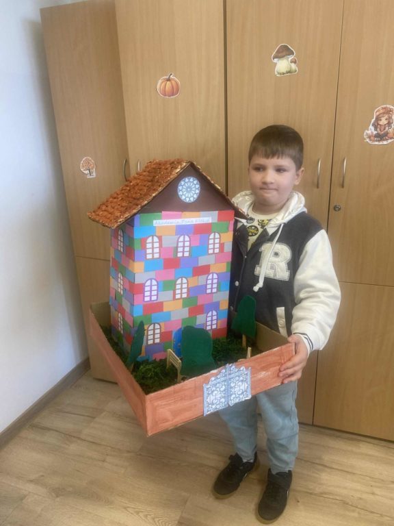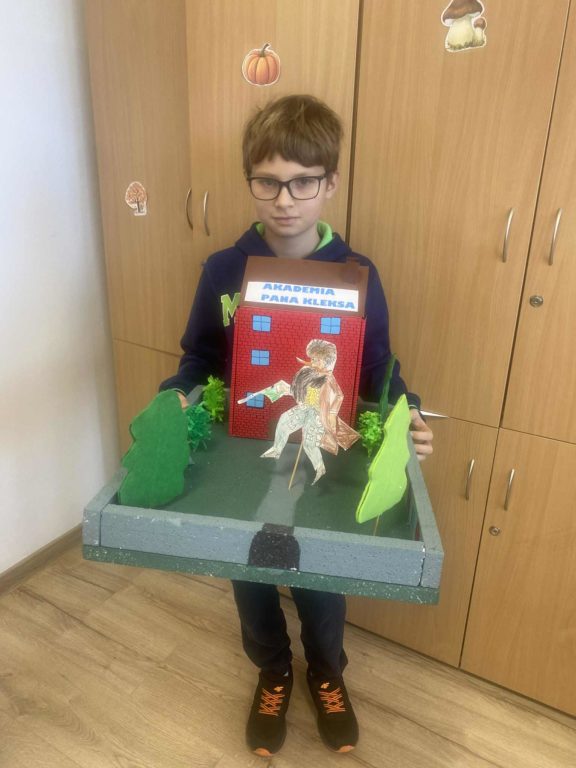 Uczniowie klasy IV przygotowali w domu niezwykłe makiety przedstawiające Akademię Pana Kleksa. Inspiracją do pracy była lektura Jana Brzechwy, która pobudziła wyobraźnię naszych artystów. Każda makieta była wyjątkowa – pojawiły się kolorowe sale lekcyjne, boisko do gry globusem, a nawet sam Pan Kleks. Uczniowie wykazali się ogromną pomysłowością, wykorzystując różnorodne materiały: karton, plastelinę , papier, tkaniny, patyczki… Brawo dla czwartoklasistów za kreatywność i zaangażowanie!