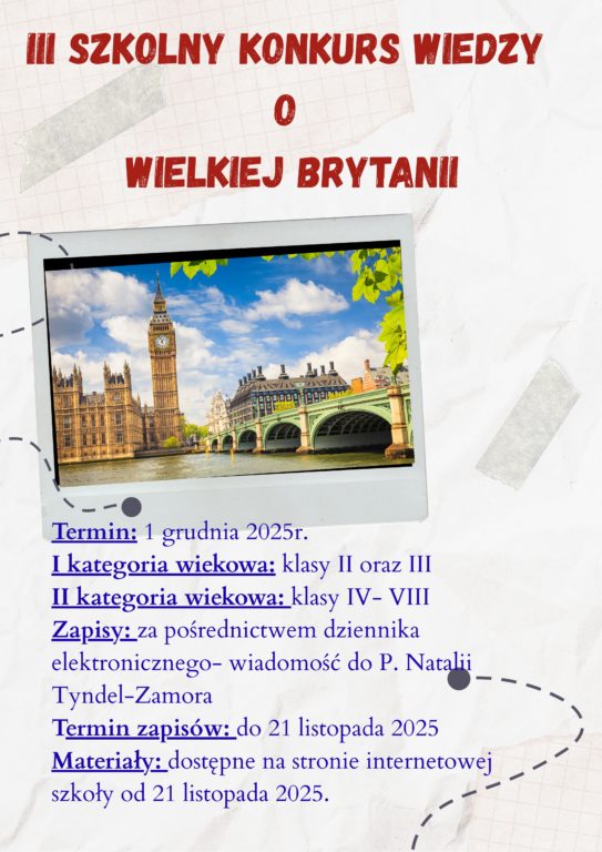 - Konkurs wiedzy: dla uczniów z klas V- VIII
