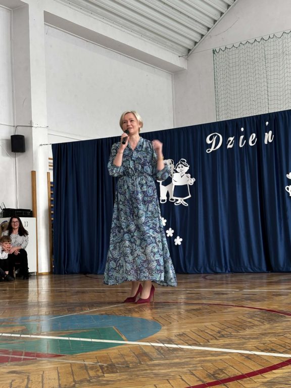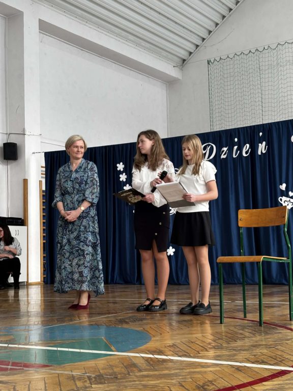 Nie zabrakło również wręczenia własnoręcznie przygotowanych upominków. W tym czasie uczennica klasy IV, Natalia Stachoń, zaśpiewała życzenia ,,Wszystkiego Dobrego…” która spotkała się z bardzo ciepłym przyjęciem publiczności.